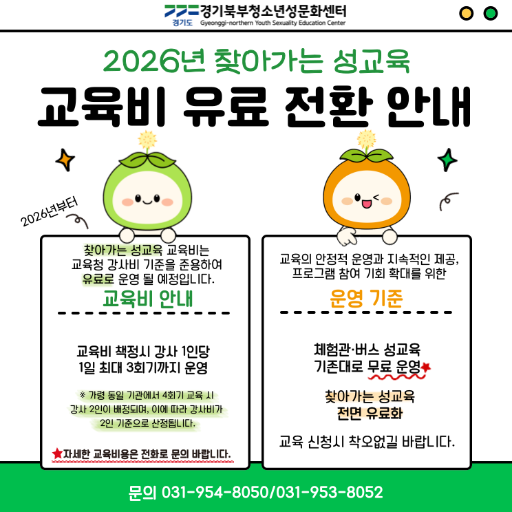 경기북부청소년성문화센터는 2026년부터 찾아가는 성교육을 전면 유료로 운영합니다.
