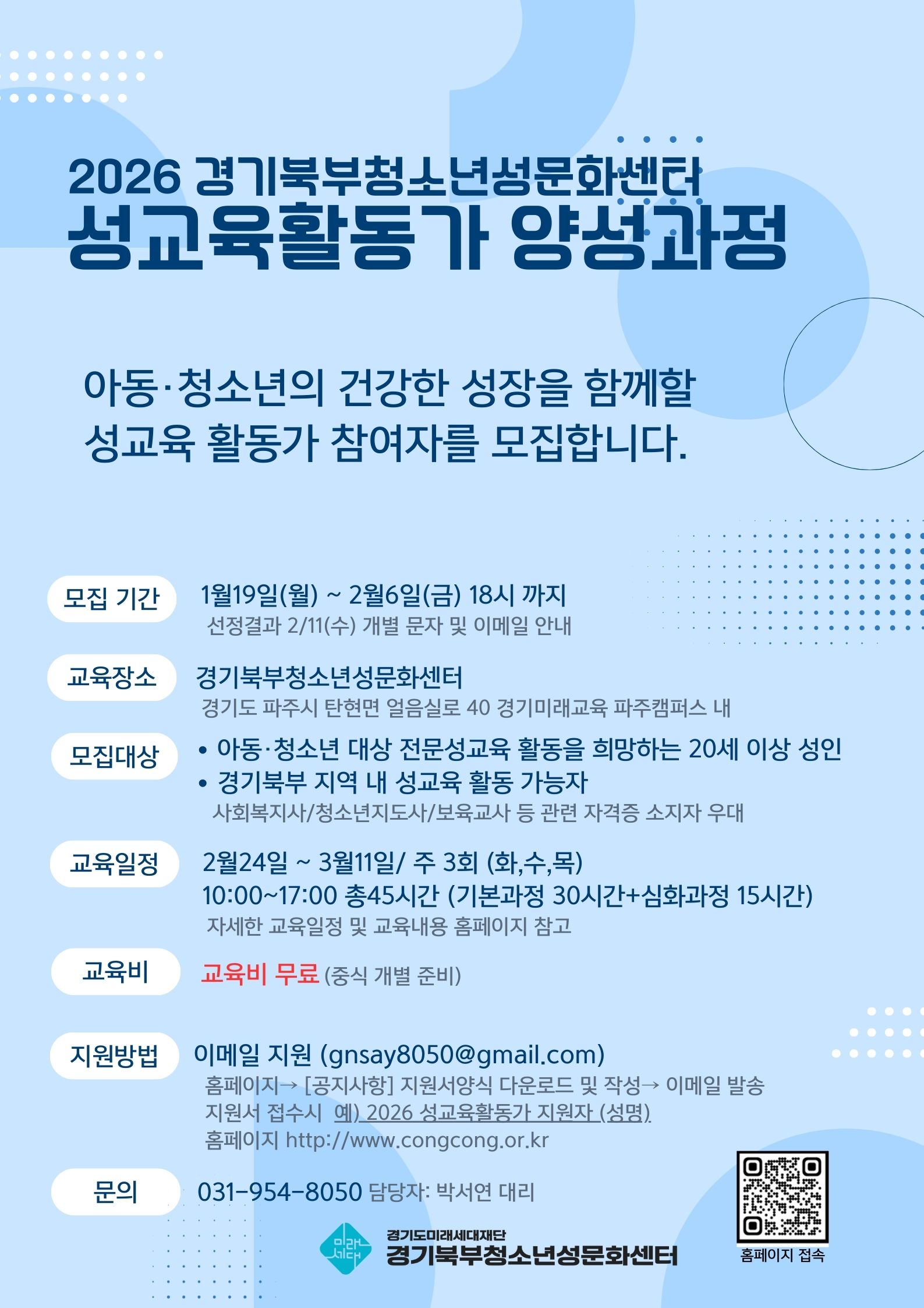 2026 경기북부청소년성문화센터 성교육활동가 양성과정 지원자 모집